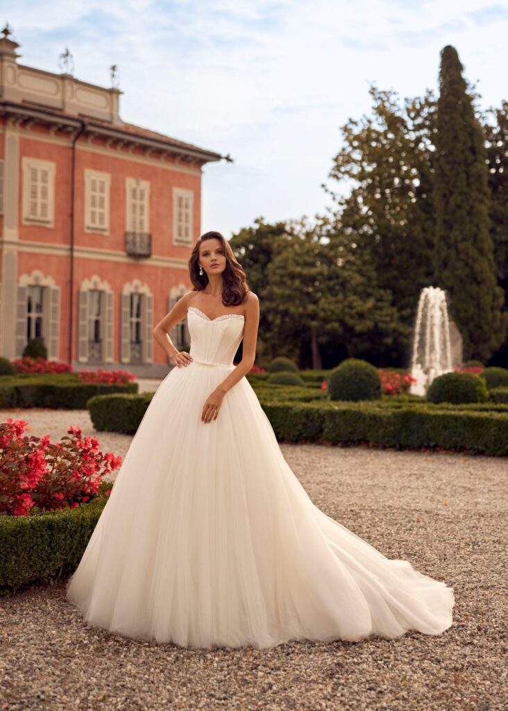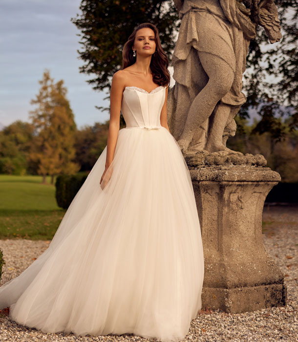 Η άλφα γραμμη με το εφαρμοστό μπούστο και την ανάλαφρη κομψή φούστα κολακεύει όλα τα σώματα. Ιδανική για τις νύφες που επιθυμούν έναν παραμυθένιο γάμο.