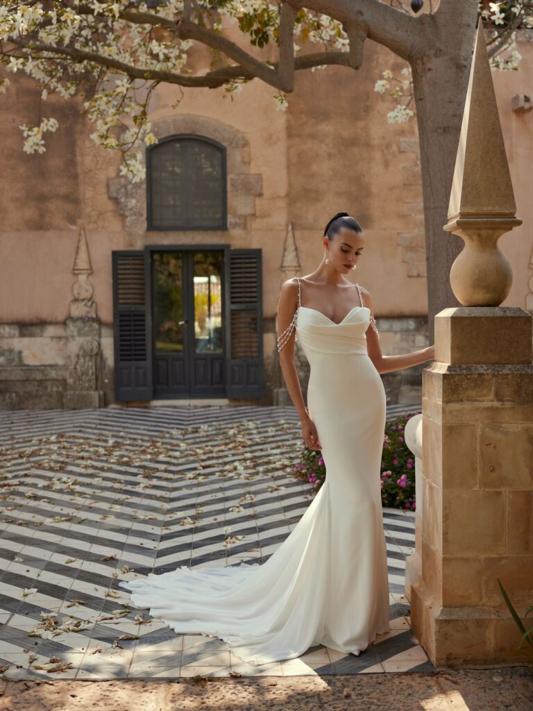 Τα νυφικά Mikado επιλέγονται από τις νύφες που αγαπούν το minimal και σοφιστικέ ύφος. Τα μεταξωτά τους υφάσματα αποπνέουν κομψότητα και εξασφαλίζουν μια σικάτη και διαχρονική παρουσία